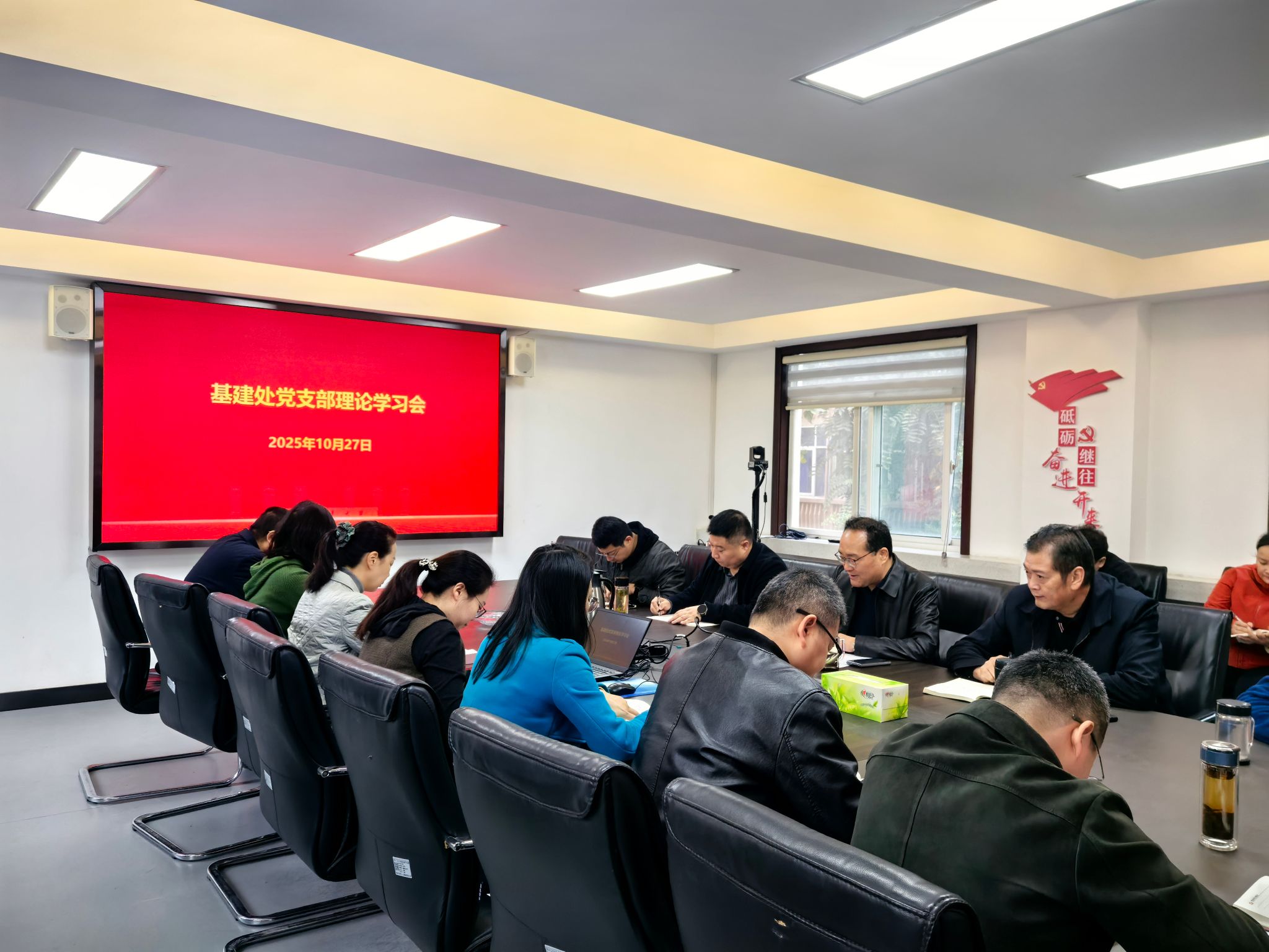 10月27日上午,基建处党支部召开10月份党员理论学习会,会议由党支部书记张小卫主持,支部党员参加会议。